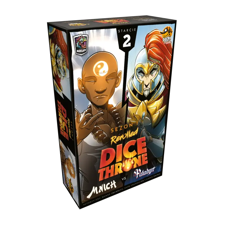 Dice Throne to szybka gra karciano-kościana, która sprawi, że Twoje serce zabije mocniej. Wybierz bohatera i wykorzystaj jego umiejętności, by pokonać przeciwnika. Każde pudełko zawiera całkowicie niezależną grę i pozwala stoczyć pojedynek między dwoma bohaterami. Można łączyć bohaterów z różnych części „Dice Throne”, by zagrać w więcej niż 2 graczy. Wszystkie komponenty związane z bohaterem mieszczą się w poręcznej zamykanej tacce, dzięki której przygotowanie do gry przebiega błyskawicznie. Po prostu otwórz pudełko i zacznij bitwę!