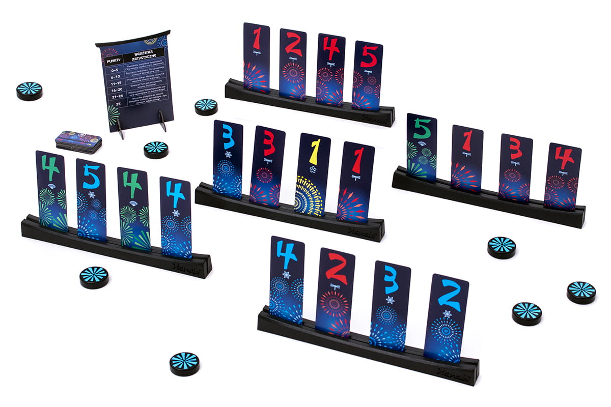Rozgrywka w Hanabi opiera się na współpracy, co oznacza, że nie będziecie walczyć przeciwko sobie, a zwyciężyć możecie tylko wszyscy razem. W tym celu konieczne jest stworzenie 5 fajerwerków poprzez ułożenie zestawu kart w każdym kolorze w rosnącym porządku numerycznym.