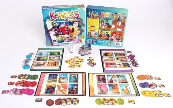 W grze Komiks gracze będą układać historie na wybrany temat przy pomocy losowo dobranych kart zawierających komiksowe ilustracje. Jaką historię zamierzasz zaprezentować? Przygodową? Kryminalną? Horror? Romans? Puść wodze fantazji! Opowieść może być zabawna, straszna, ekscytująca albo wzruszająca... wybór należy do Ciebie. Musisz jednak pamiętać o trzech rzeczach: treść historii powinna dobrze pasować do tematu, masz limitowany czas na jej wymyślenie, a na koniec zostanie ona oceniona przez innych graczy... a ten z Was, który zdobędzie najwięcej punków, wygra!
